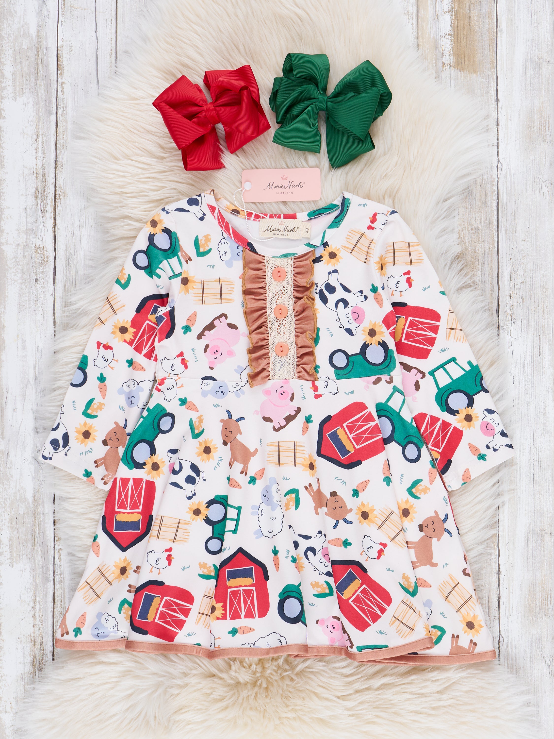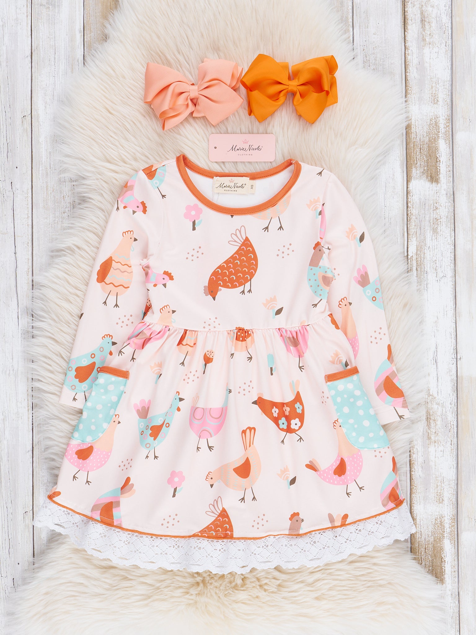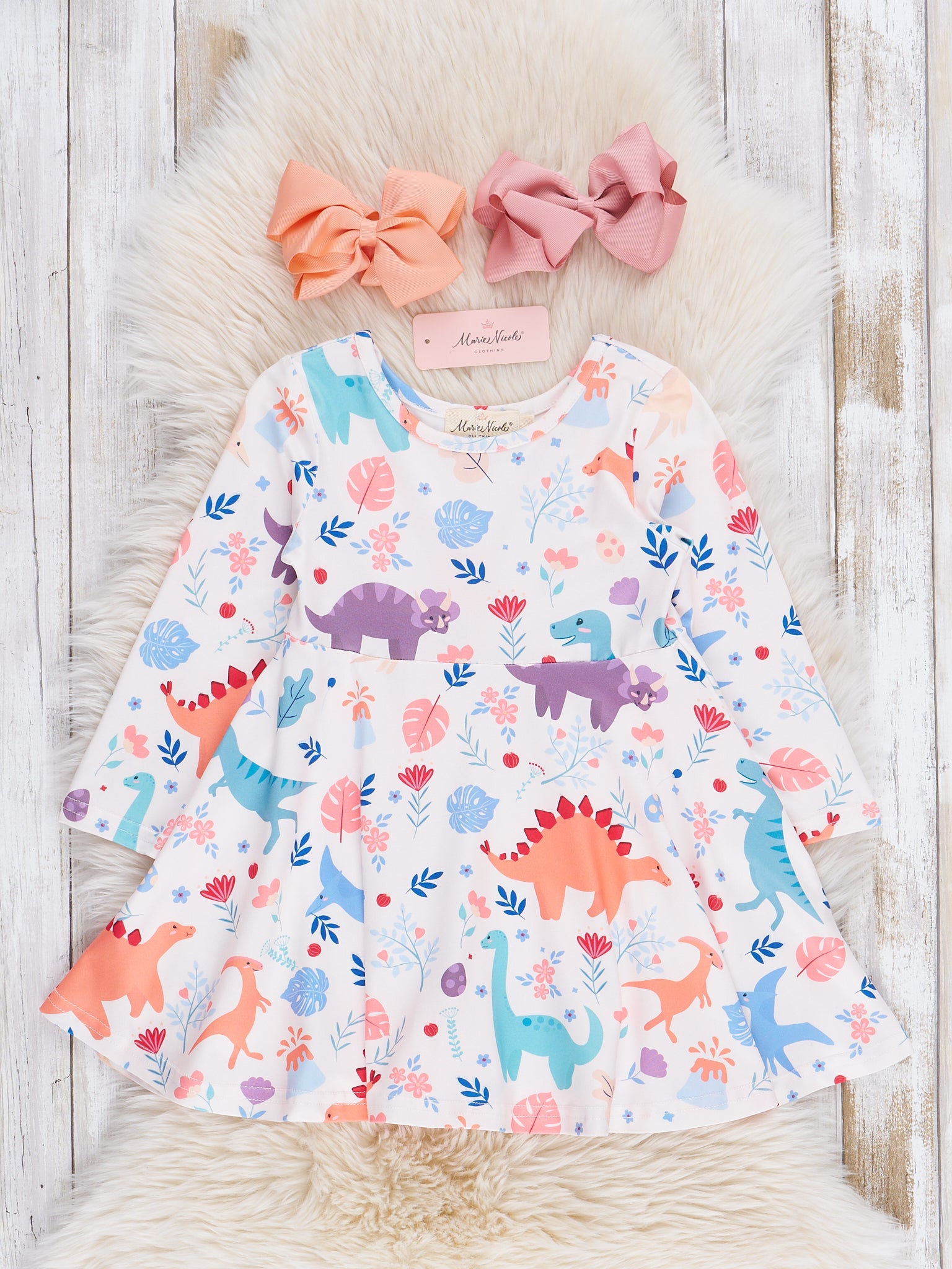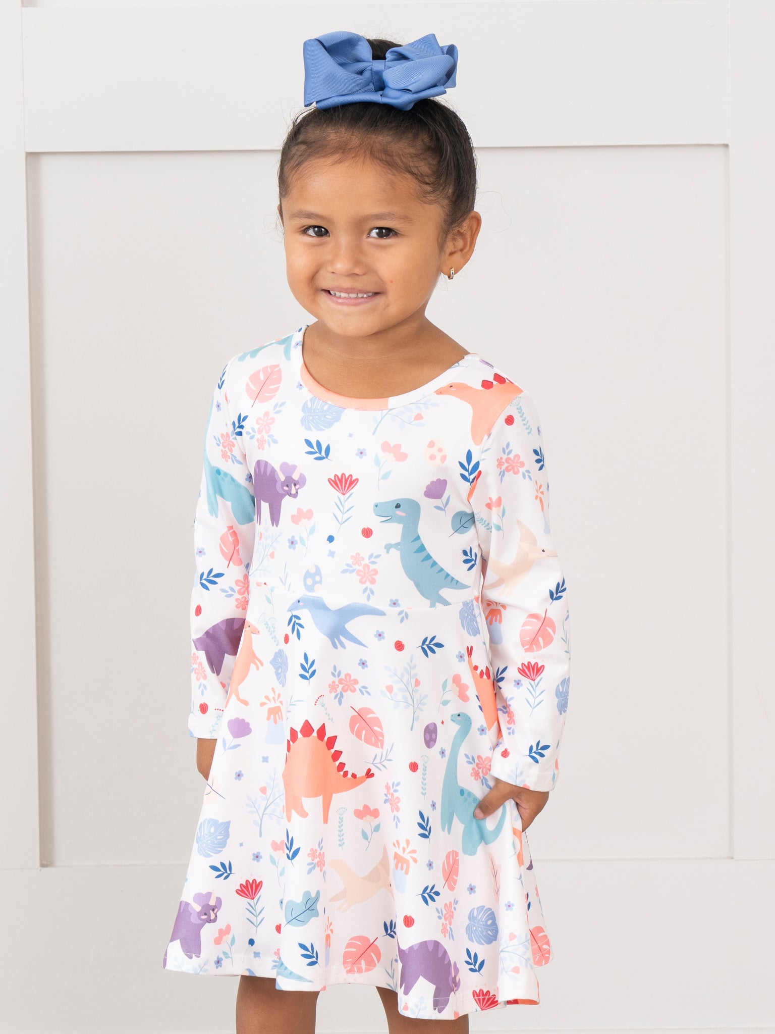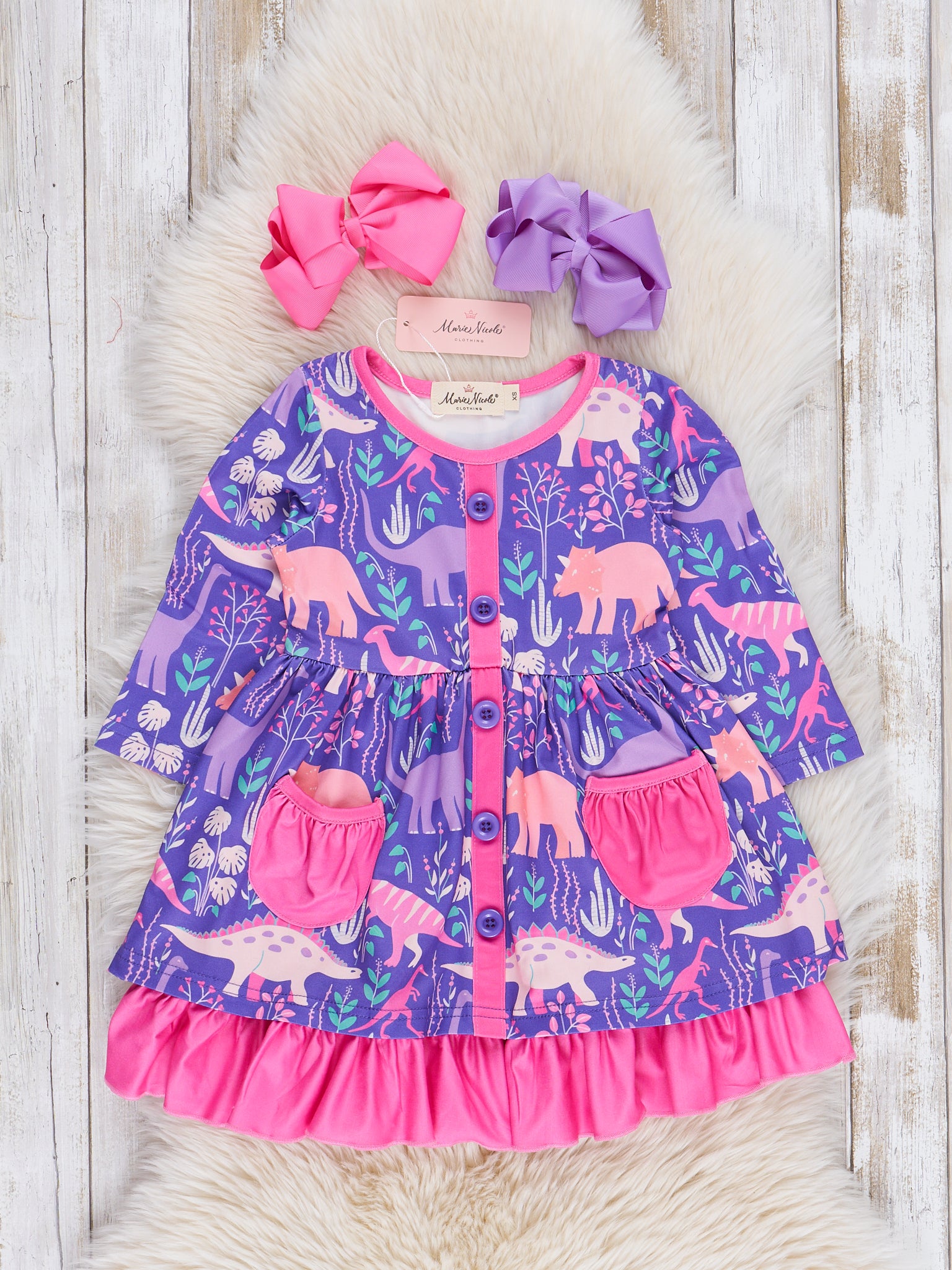 Pink & Purple Dinosaur Garden Button Ruffle Dress