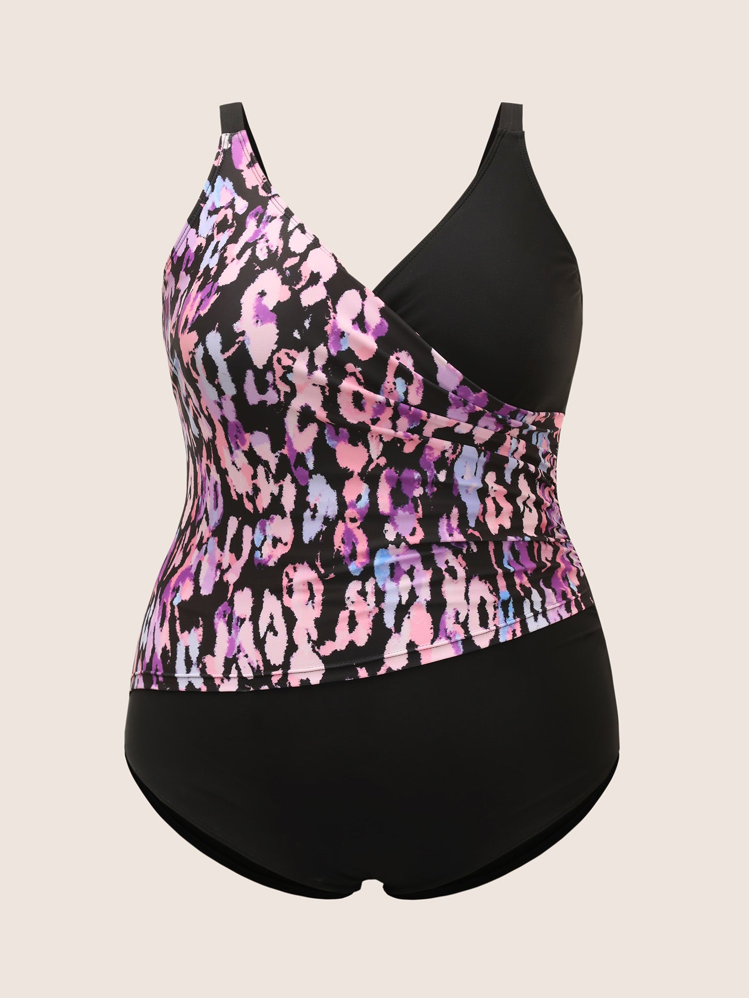 Leopard Print Patchwork Gathered One Piece Swimsuit