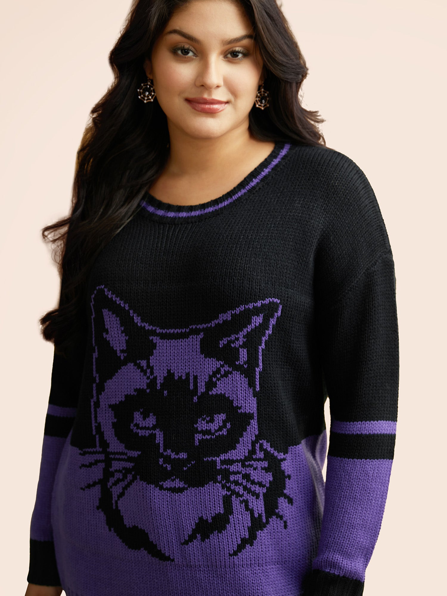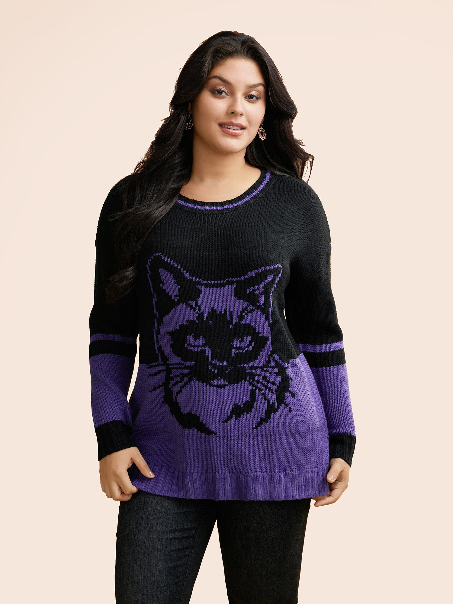 Mystic Cat Pattern Crew Neck Pullover